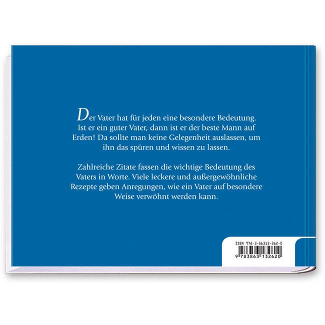 ISBN: 978-3-86313-262-0Art-Nr.: 13262Umfang: 288 Seiten Maße: 17,5x12,6cm Gewicht: 495g Ausstattung: Cover mit partieller 3D-Prägung und FolieEin wunderbares Geschenk für alle Väter. Mit passenden Zitaten, leckeren Rezepten und stimmungsvollen Fotos.
