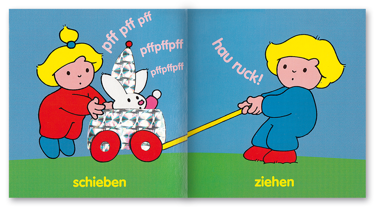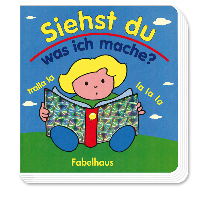 Ausstanzungen, Glitzerfolie und abgerundeten EckenSchieben, ziehen, lachen, weinen. Siehst du, was ich mache? Das lustige Büchlein zeigt auf jeder Seite, was Kinder am Tag so alles machen.