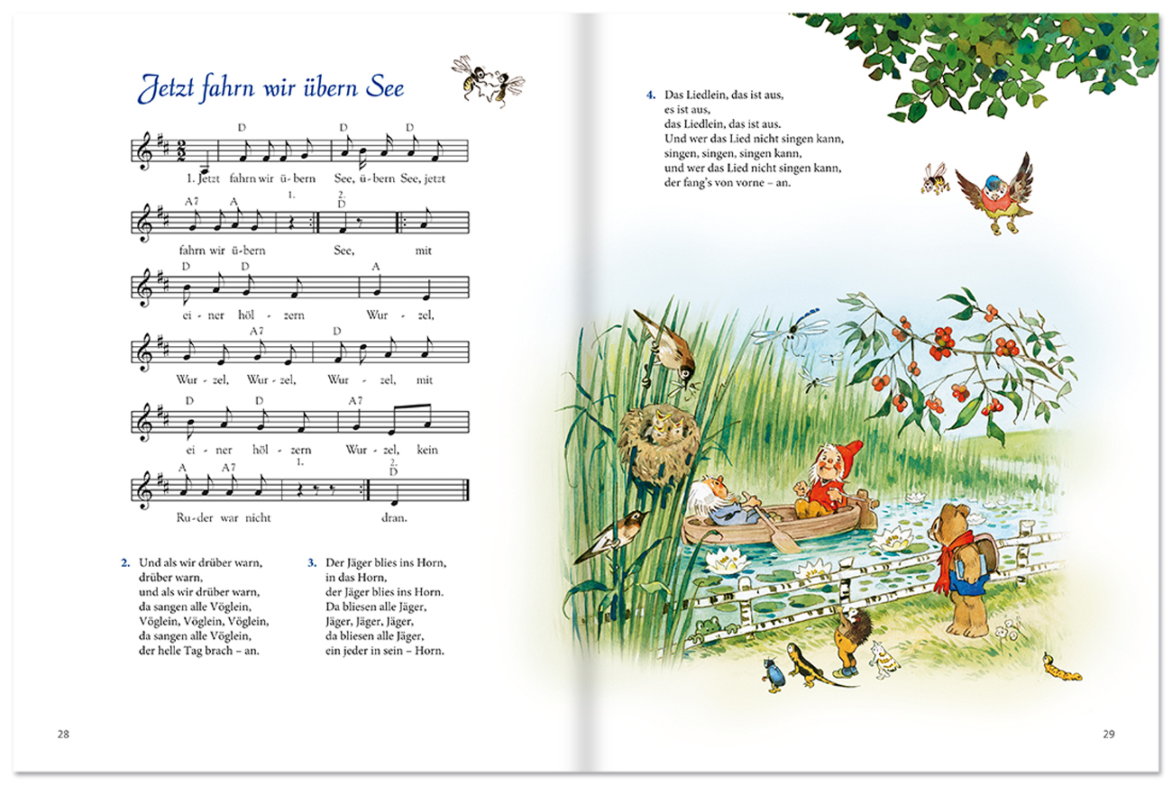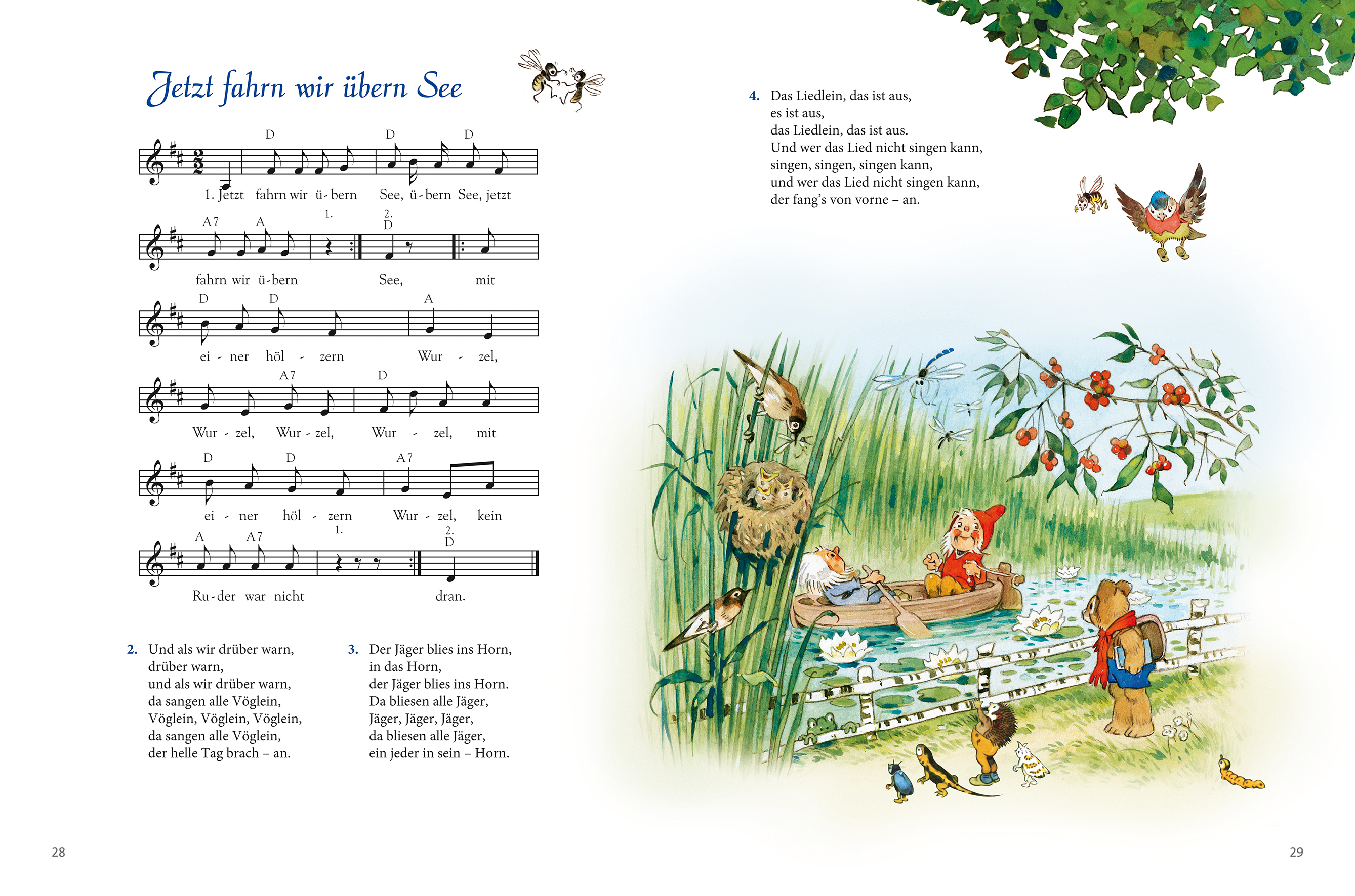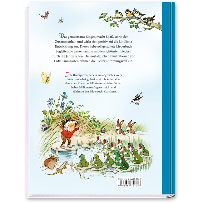 Dieses nostalgisch gestaltete Liederbuch mit den schönsten und bekanntesten Liedern führt die ganze Familie mit Frohsinn durch alle Jahreszeiten. Mit den Noten und Akkorden lassen sich die Lieder auch leicht mit Instrumenten begleiten. Abgerundet wird das Liederbuch durch fantasievolle Zeichnungen von Fritz Baumgarten.