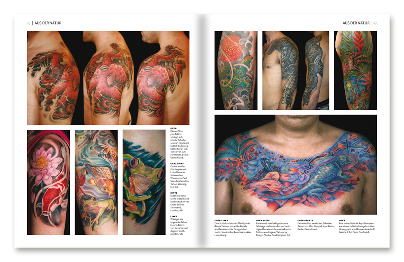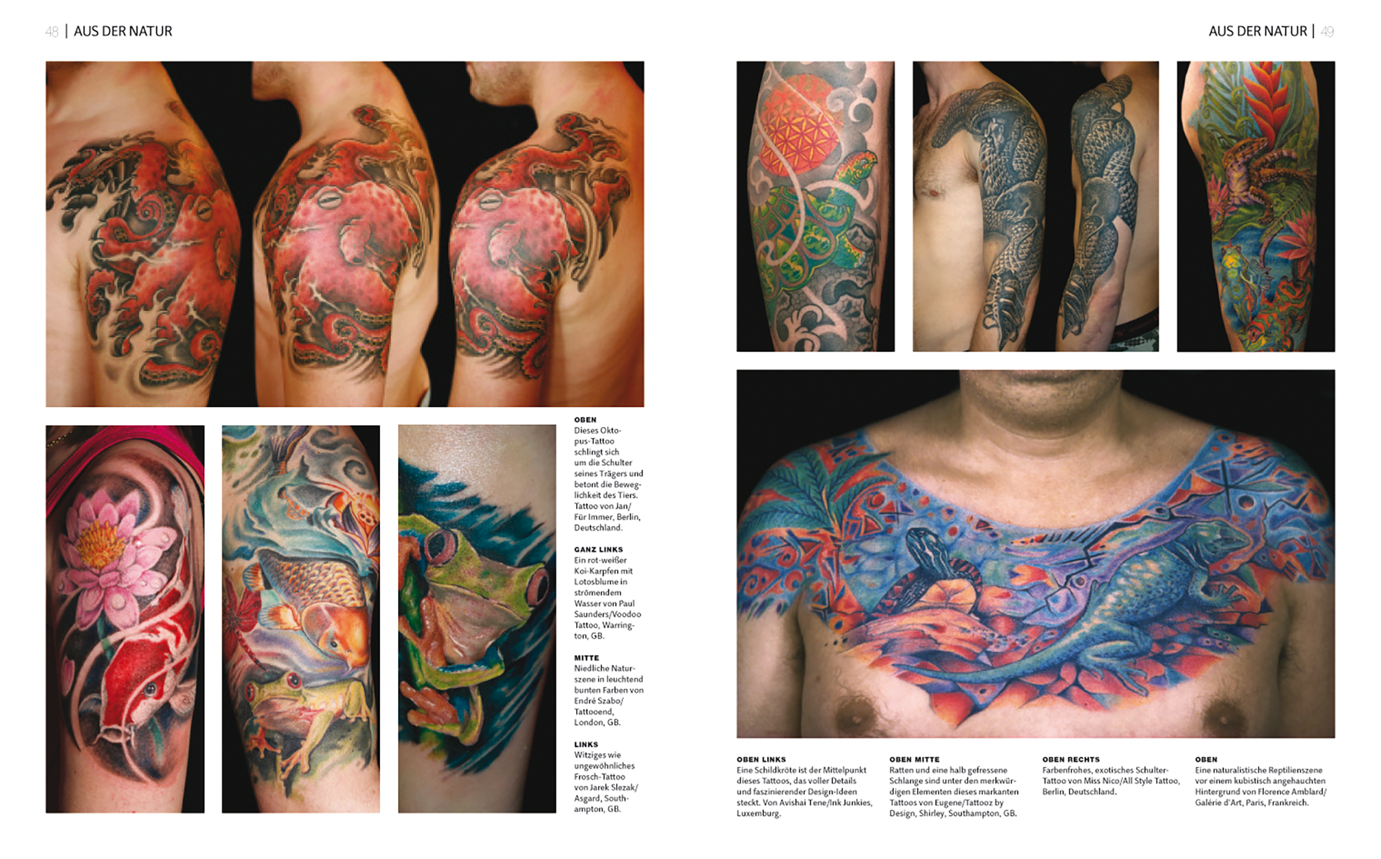 Diese inspirierende Fotosammlung präsentiert die besten Tattoo-Kunstwerke, die es derzeit gibt - ideal für alle, die ein Tattoo möchten, aber noch nicht genug über die vielfältigen Themen und Motive wissen. Die faszinierenden Fotos demonstrieren das Talent der weltbesten Tattoo-Künstler und zeigen die neuesten Tattoo-Designs nach Themen geordnet: von berühmten Gesichtern über Fantasy- oder Naturmotive bis hin zu Pin-ups, Comicfiguren und witzigen Szenen.