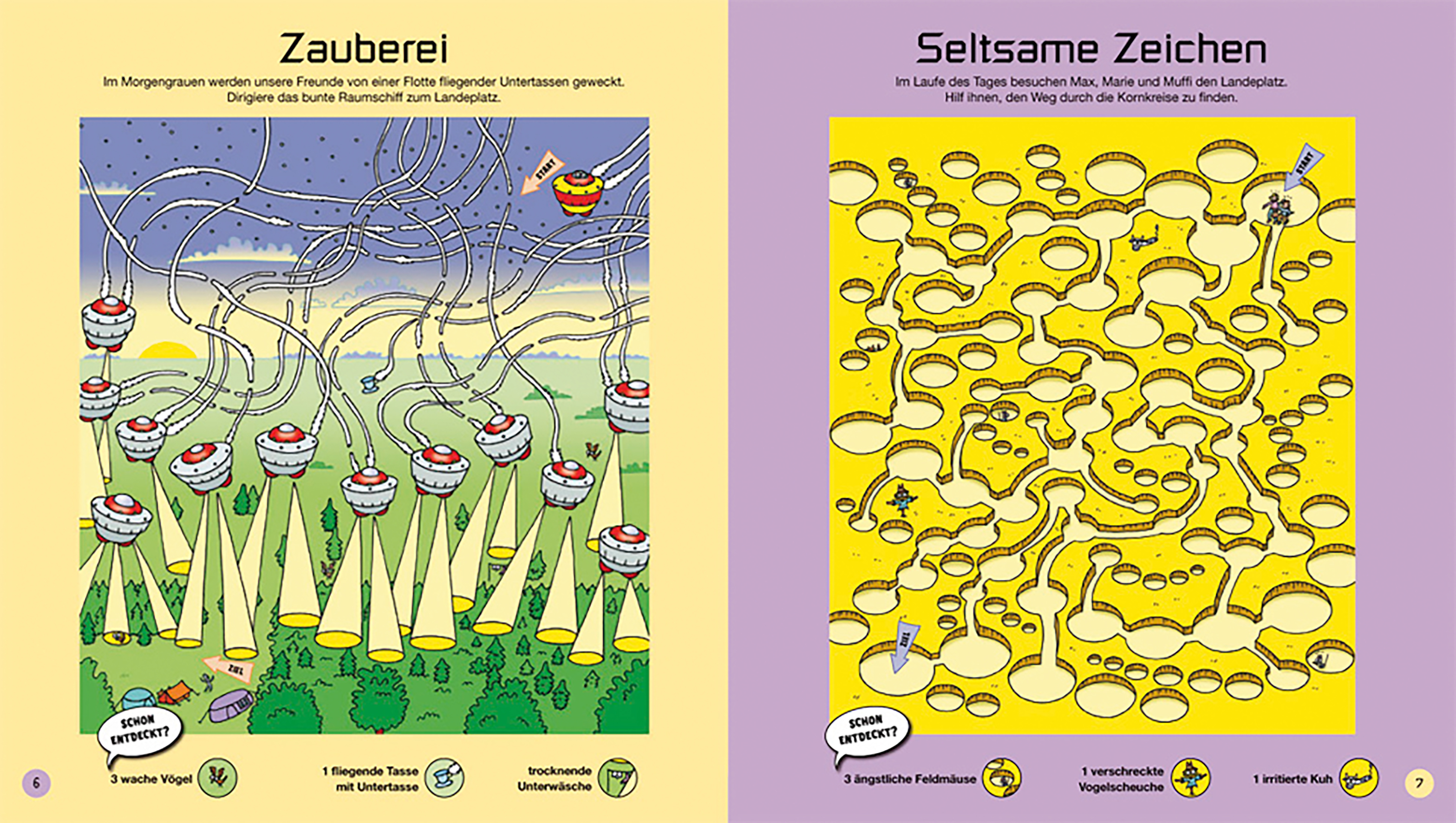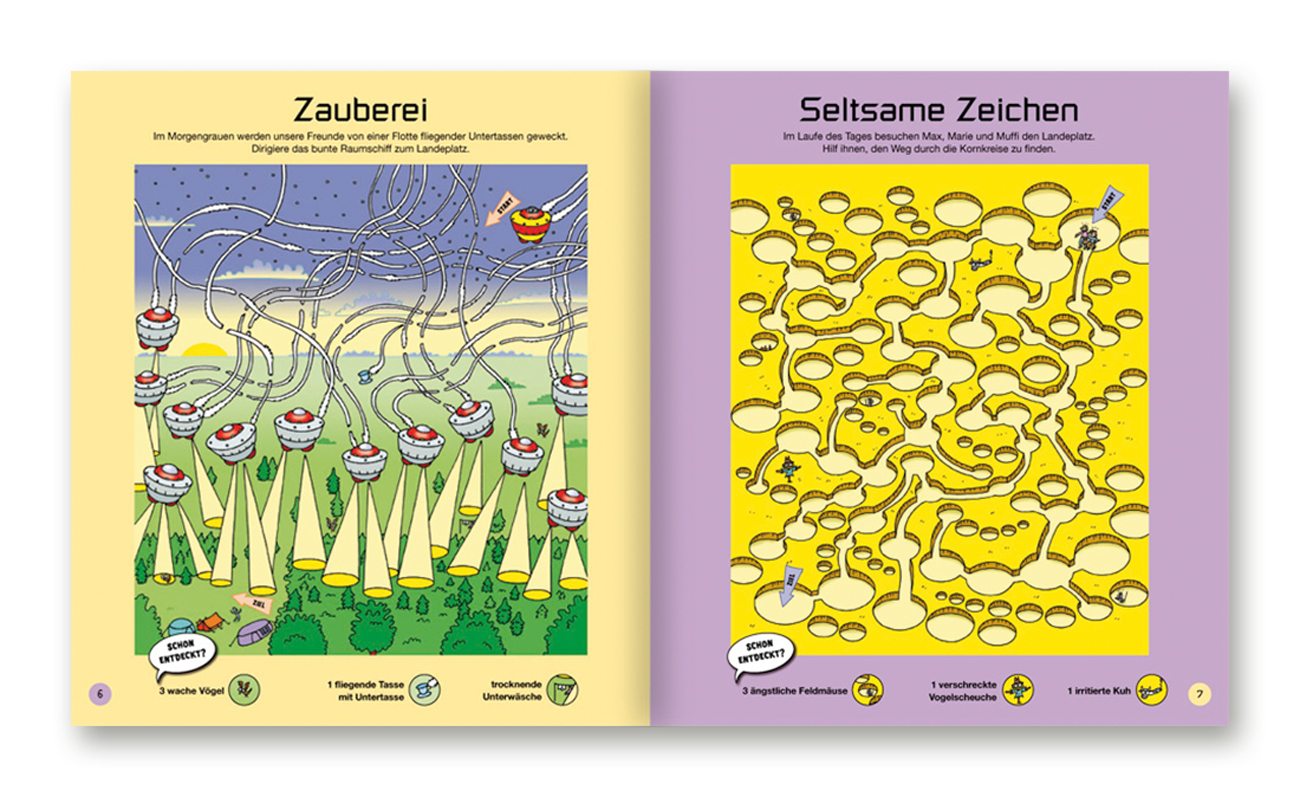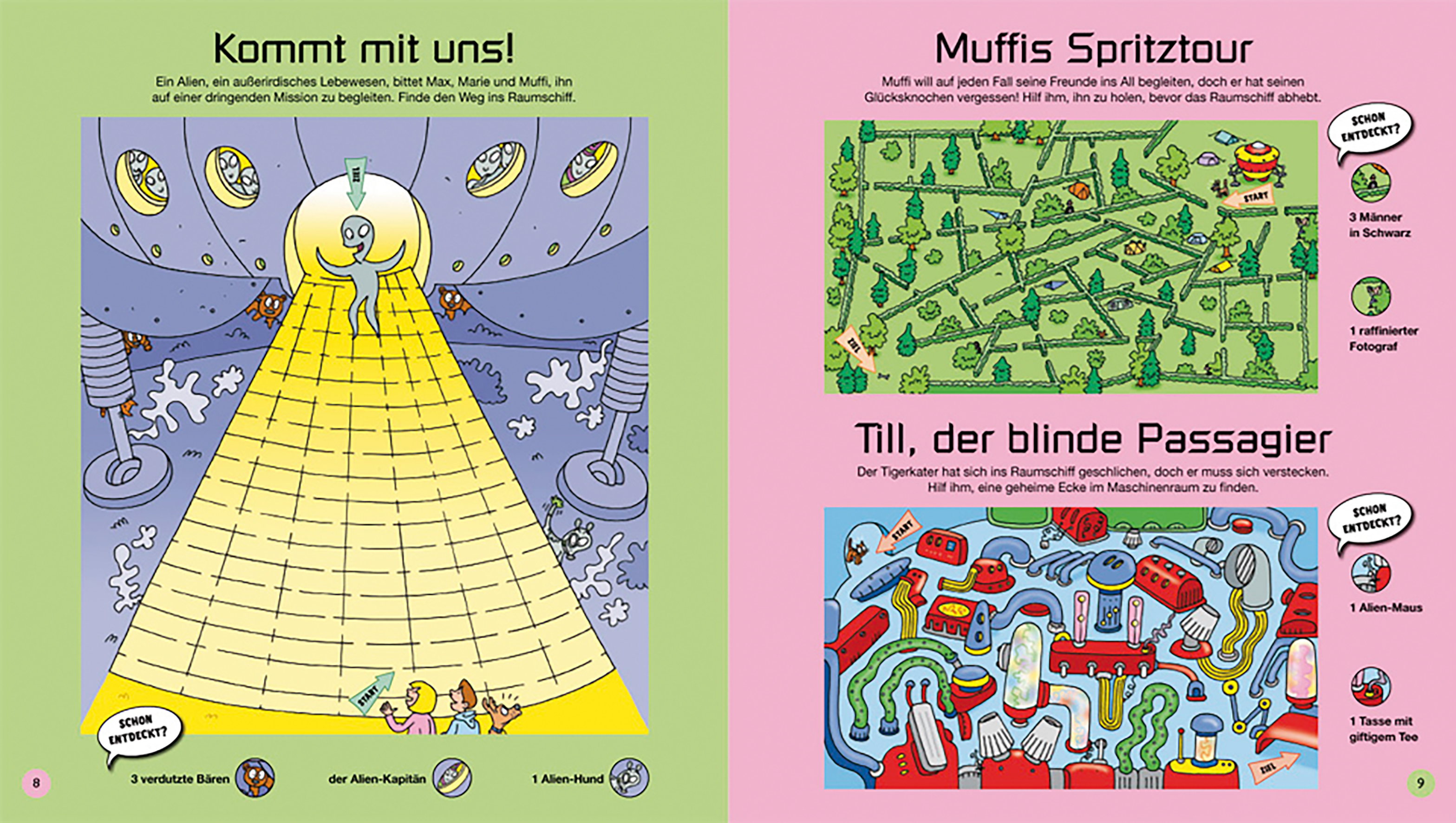 Begleite Max, Marie und ihren Hund Muffi auf ihrer abenteuerlichen Reise durch die Galaxien in der unendlichen Weite des Weltalls. Wenn ein geheimnisvolles UFO auf der Erde landet und die Außerirdischen unsere Freunde bei der Rettung des Universums um Hilfe bitten - kann man da nein sagen? Schnall dich an und halte dich gut fest, wenn die Rakete startet, erforsche ferne Planeten, finde neue Freunde und nimm dich in Acht vor schwarzen Löchern! Die vielen spannenden Labyrinthe machen diese weite Reise zu einem überirdischen Vergnügen.