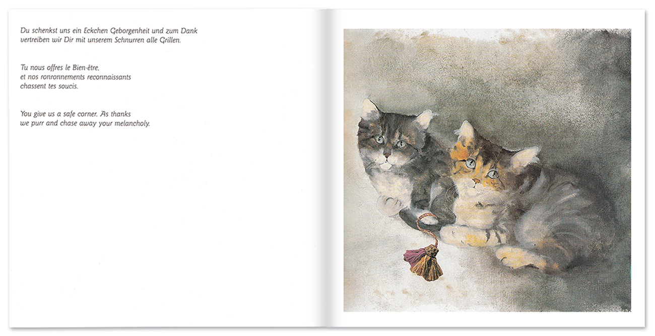 Ein Buch, das in Bildern und Texten vom liebevollen Zusammenleben mit Katzen erzählt.