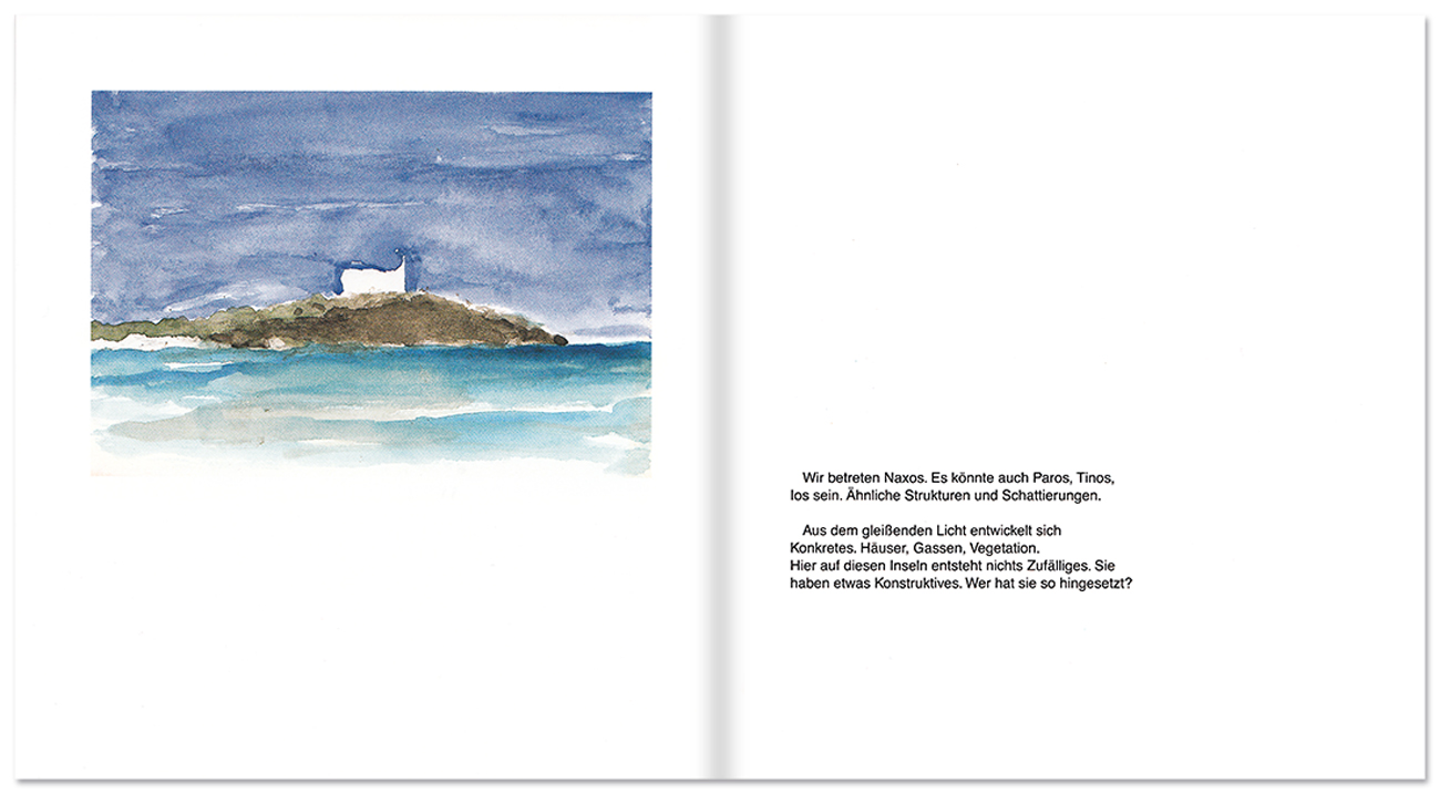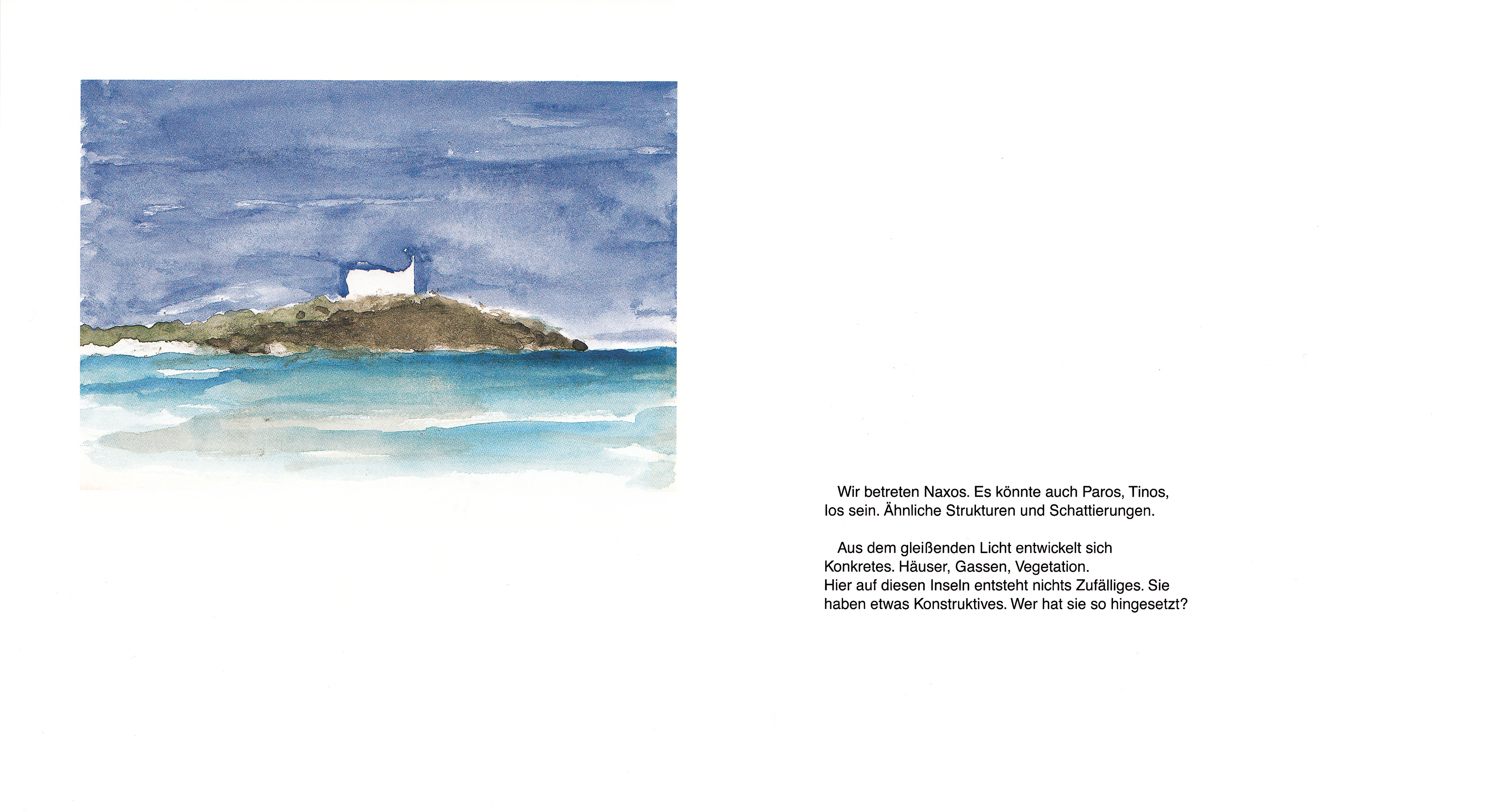 Wer kennt sie nicht, die Klarheit des griechischen Lichts, die die Strukturen und Farben der Häuser, Bäume, Blumen bestimmt. Das Licht vermittelt Unschärfe, Transparenz und Tiefen zugleich bei Gassen, Türen, uralten Olivenbäumen. Ein Wechselspiel von weite und Nähe. das Weiß der Häuser intensiviert das Blau von Türen, Fenstern und schattigem Grün. Der Künstler Hans-Jürgen Gaudeck hat in seinen faszinierenden Aquarellen und Texten grandiose Stimmungen festgehalten.