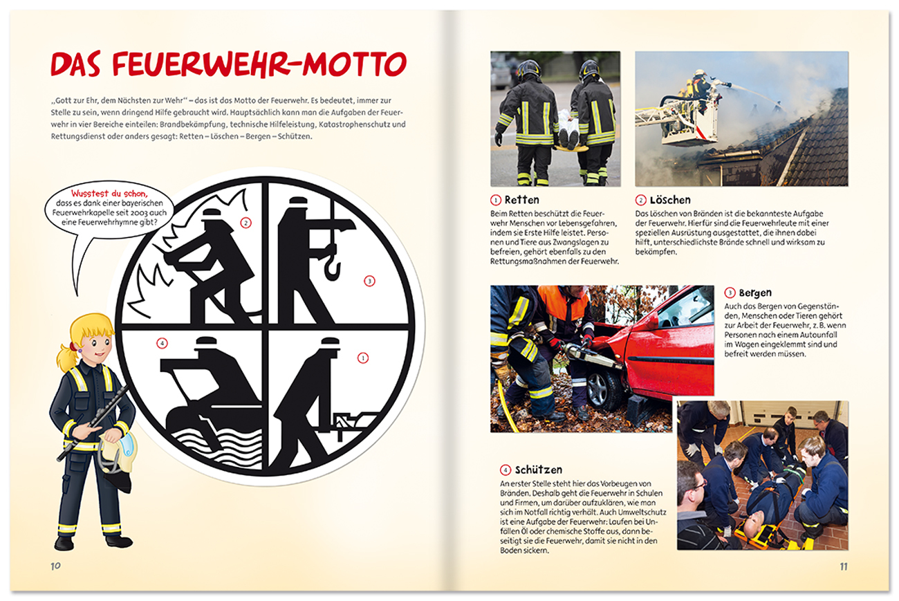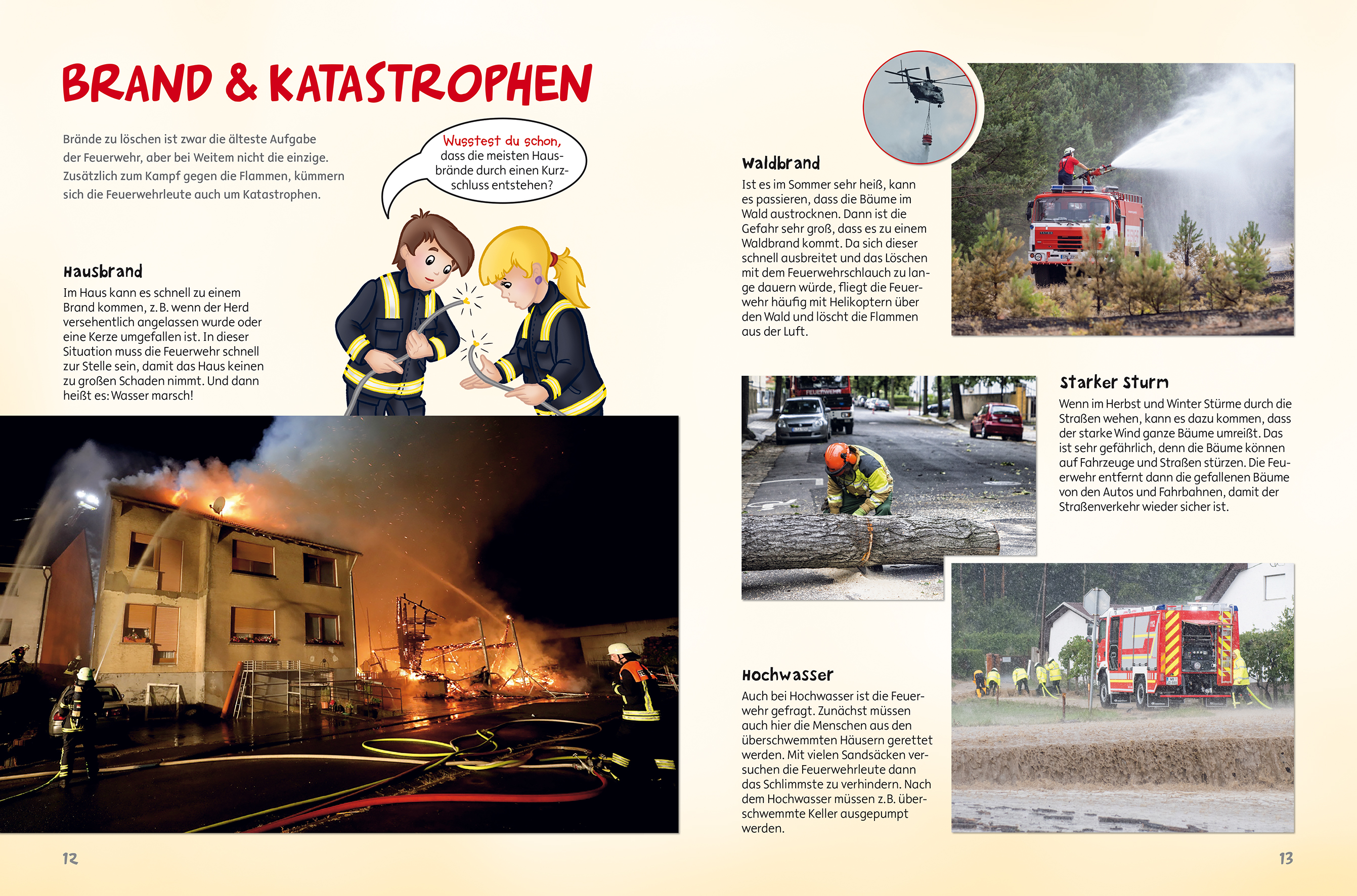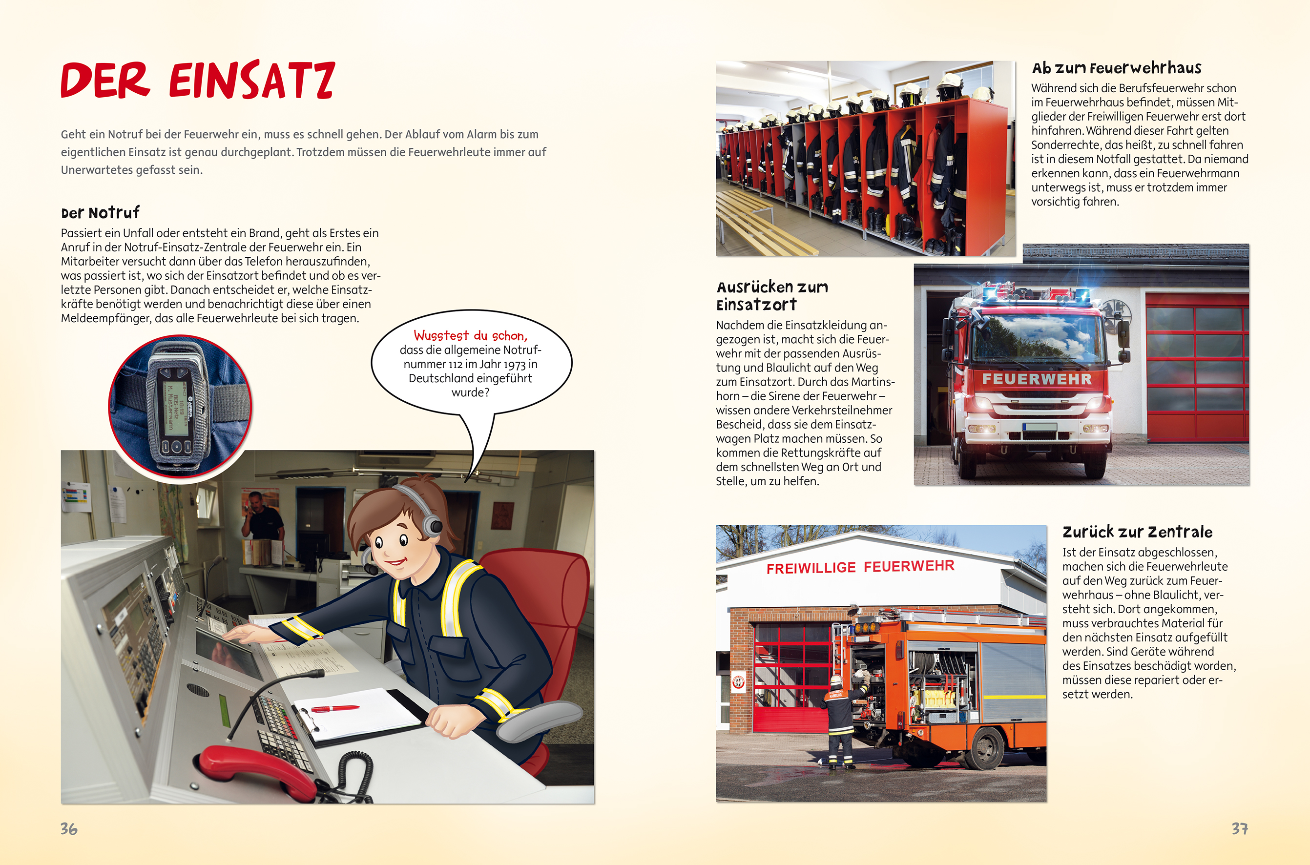 Brände löschen, Menschen retten und bei Naturkatastrophen zur Stelle sein – das und vieles mehr gehört zu den spannenden Aufgaben eines Feuerwehrmanns. Dieses Buch gewährt Kindern einen umfangreichen Einblick in den Alltag ihrer Helden. Von der Geschichte über die vielfältigen Einsätze bis hin zur Ausrüstung wird allerlei Wissenswertes über die Feuerwehr kindgerecht und mit vielen Bildern erklärt. Ein Spaß für alle Feuerwehrfans. Mit großem farbigem Feuerwehr-Poster im Format 56,8 x 42 cm.