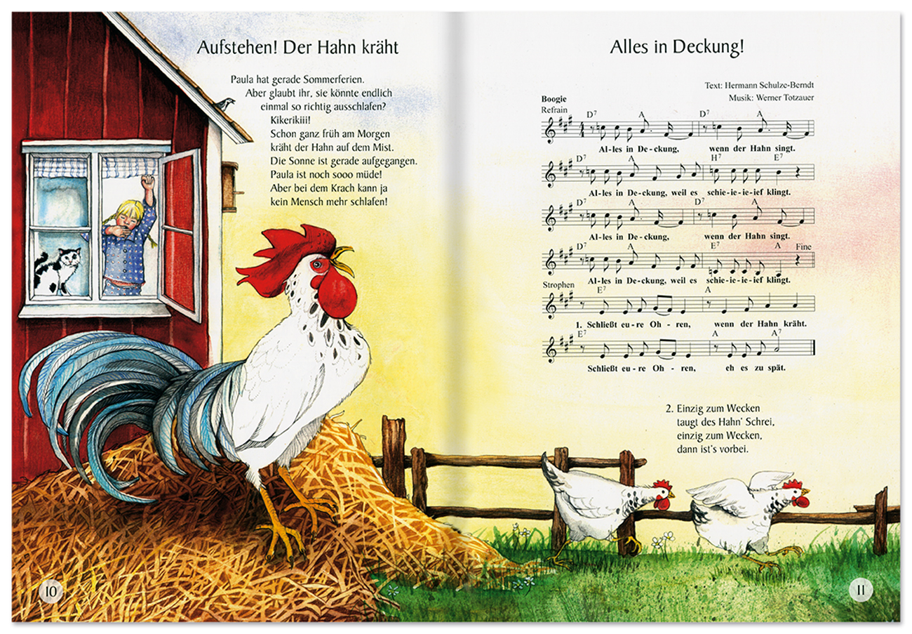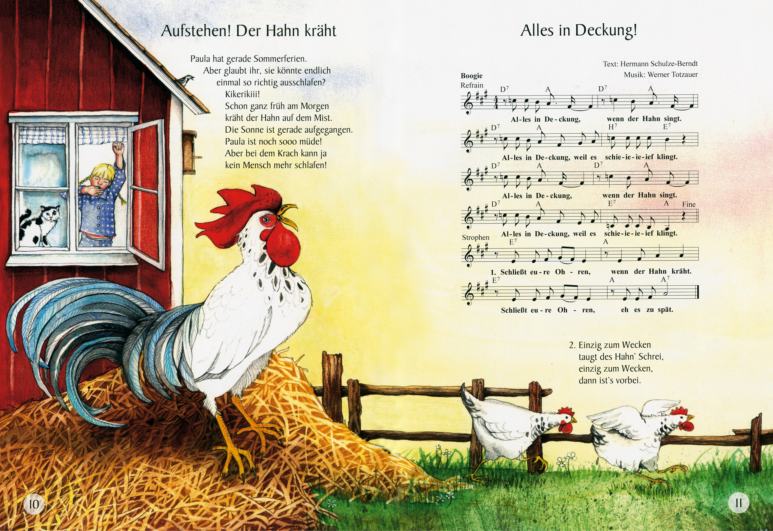 Paula lebt mit ihrer Familie auf dem Bauernhof und dort gibt es immer etwas zu tun. In einer liebvoll illustrierten Geschichte mit Noten und Gitarrengriffen erfahren wir, dass so ein Tag auf dem Bauernhof auch ziemlich aufregend sein kann, ob es nun um das Melken der Kühe, das Füttern der Hühner oder die Getreideernte geht. Begleitet werden Paulas Erlebnisse von mehr als zehn lustigen und fröhlichen Liedern über den Bauernhof und seine Bewohner. Auf der beiliegenden CD werden die Geschichten kindgerecht erzählt und von den Liedern untermalt, zusätzlich befinden sich auf der CD 11 Playbacks zum Nachsingen. Für Groß und Klein ein wunderbares Hörvergnügen!