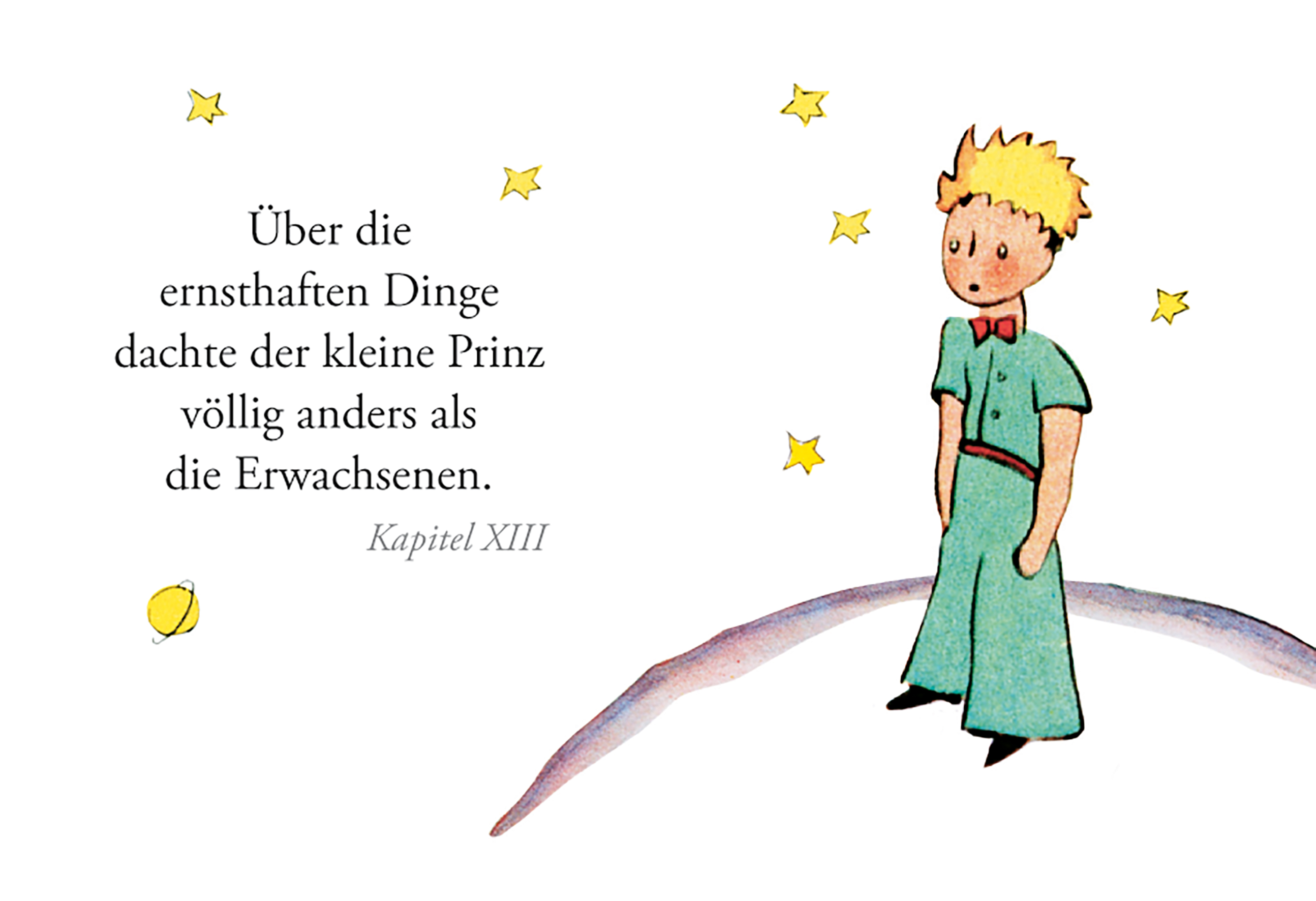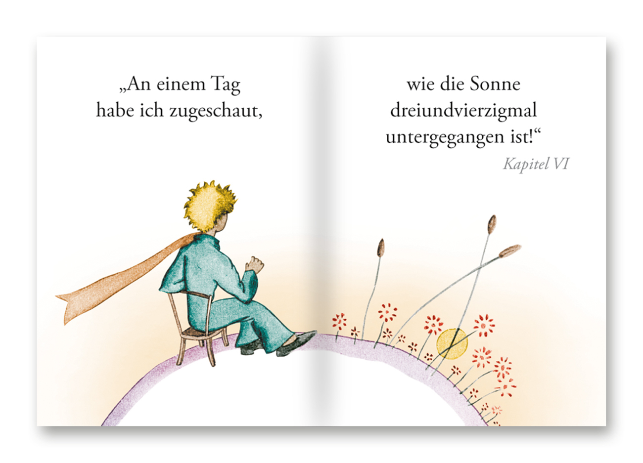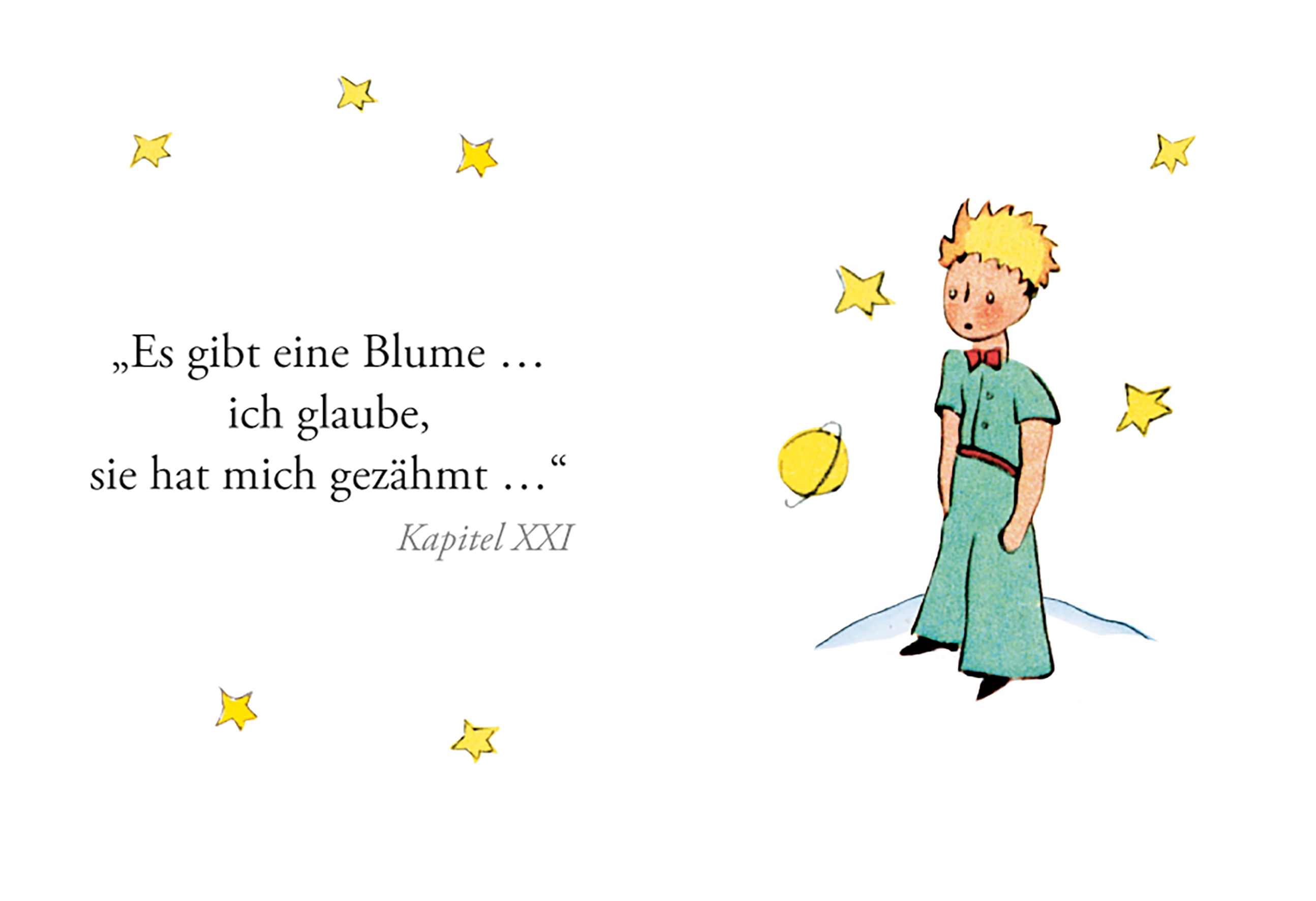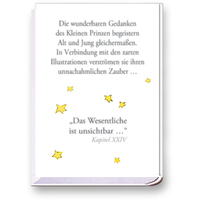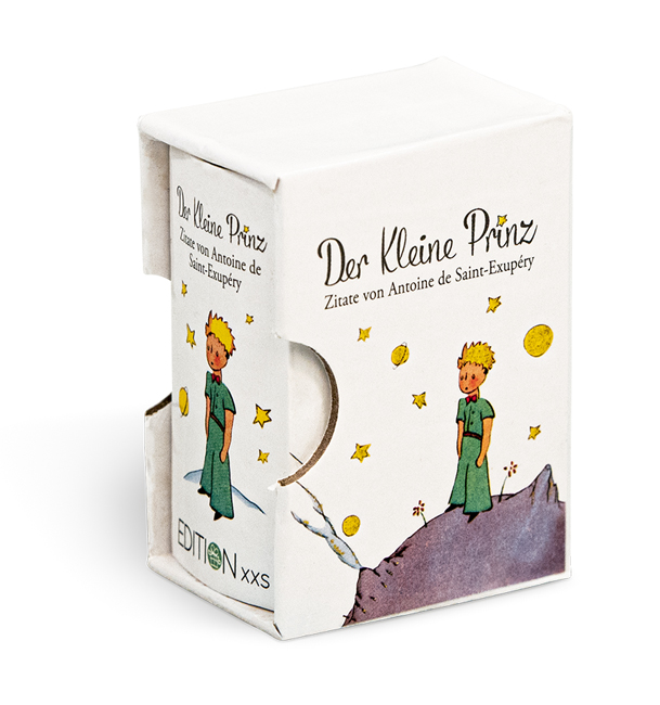 ISBN: 978-3-95408-814-0Art-Nr.: 408814Umfang: 240 Seiten Maße: 4,7x6,3cm Gewicht: 63g Ausstattung: Handgefertigtes Miniaturbuch, Schuber mit GlitzerlackEin rührendes kleines Buch mit wunderbaren Lebensweisheiten des Kleinen Prinzen – nach dem Weltbestseller von Antoine de Saint-Exupéry.